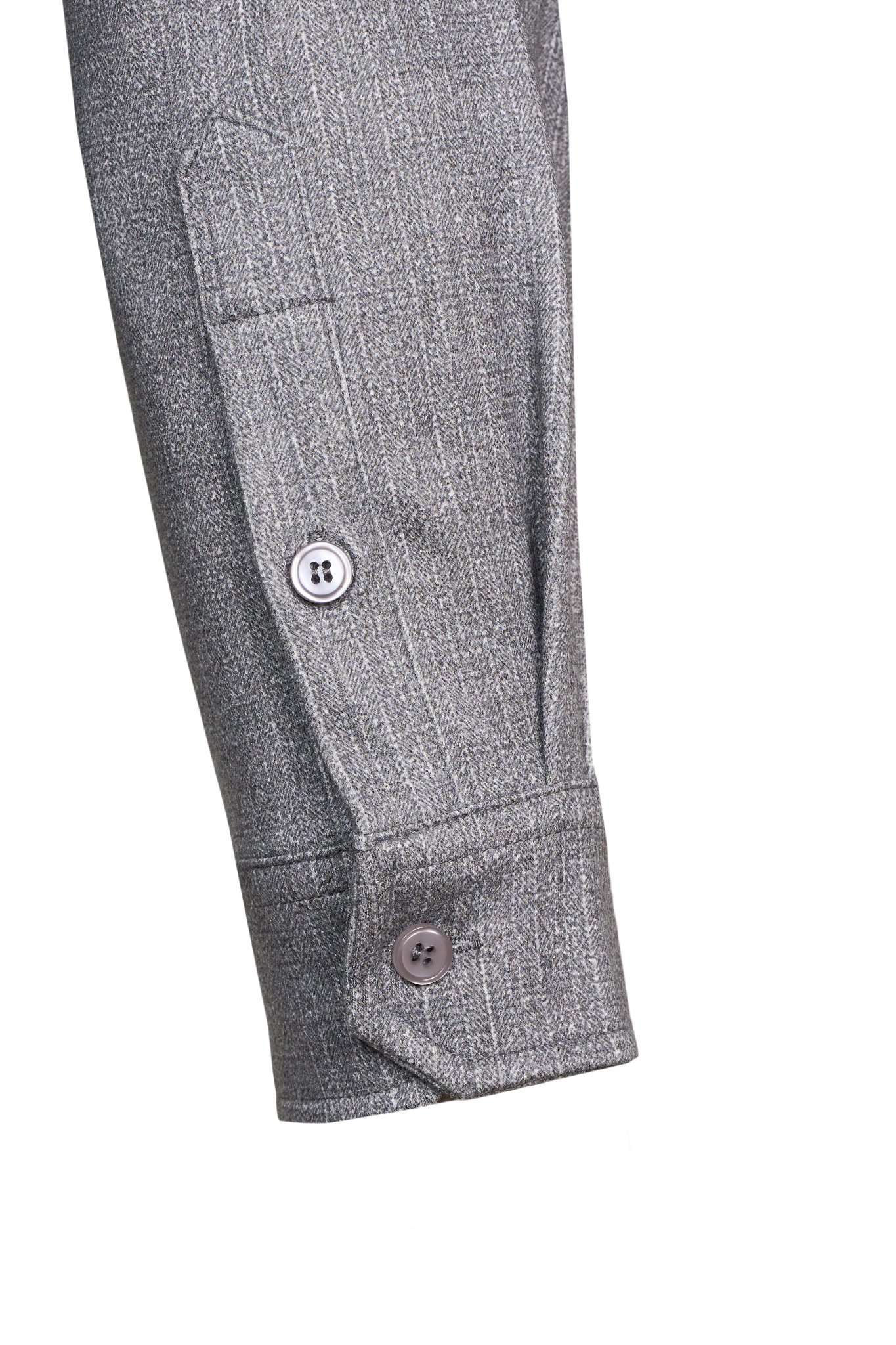 Рубашка выполнена по инновационной технологии с использованием двух типов материалов: внутренняя сторона, соприкасающаяся с телом, изготовлена из натурального хлопка, обеспечивающего комфорт и воздухопроницаемость, а внешняя часть — из смеси вискозы, полиэстера и спандекса для сохранения формы и устойчивости к сминанию.
