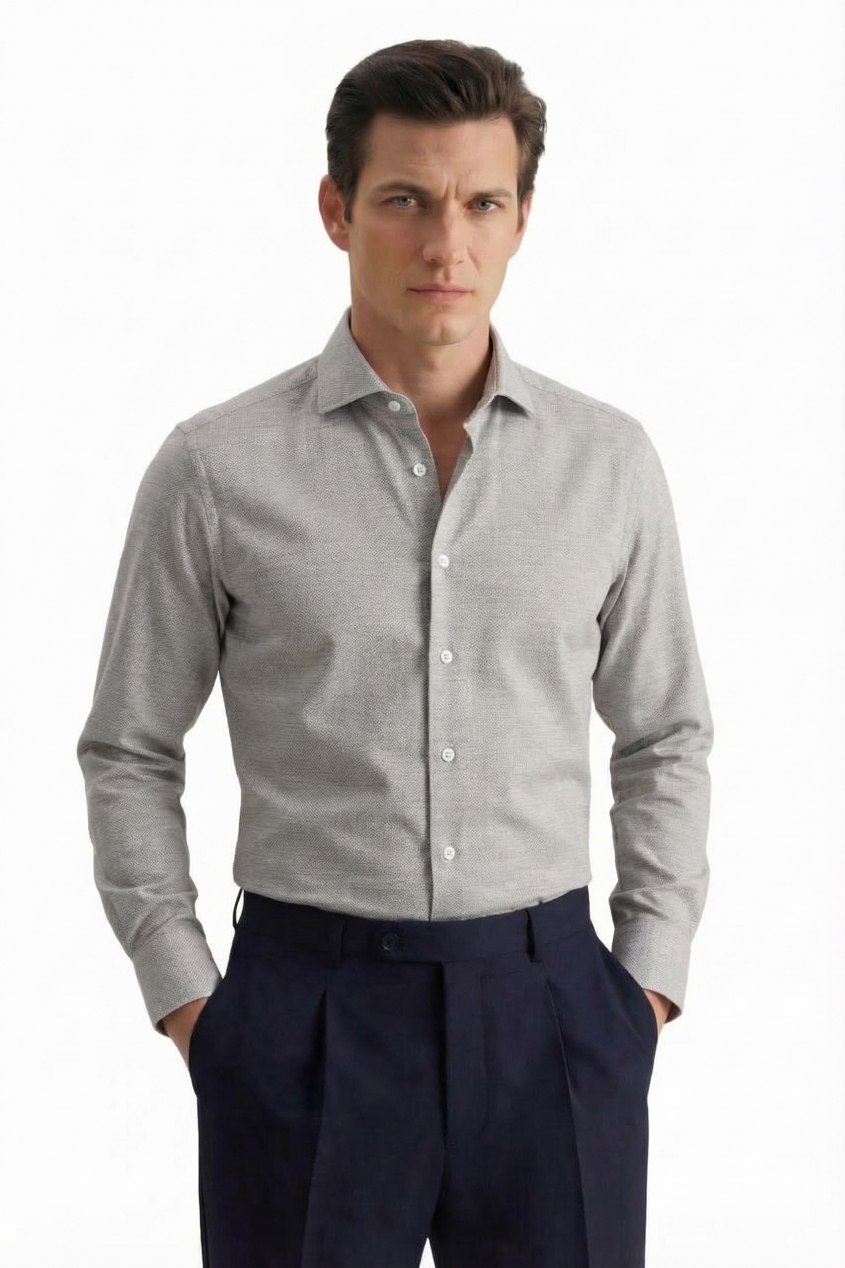 • Shaped Fit, Классический воротник, Светло-серый
