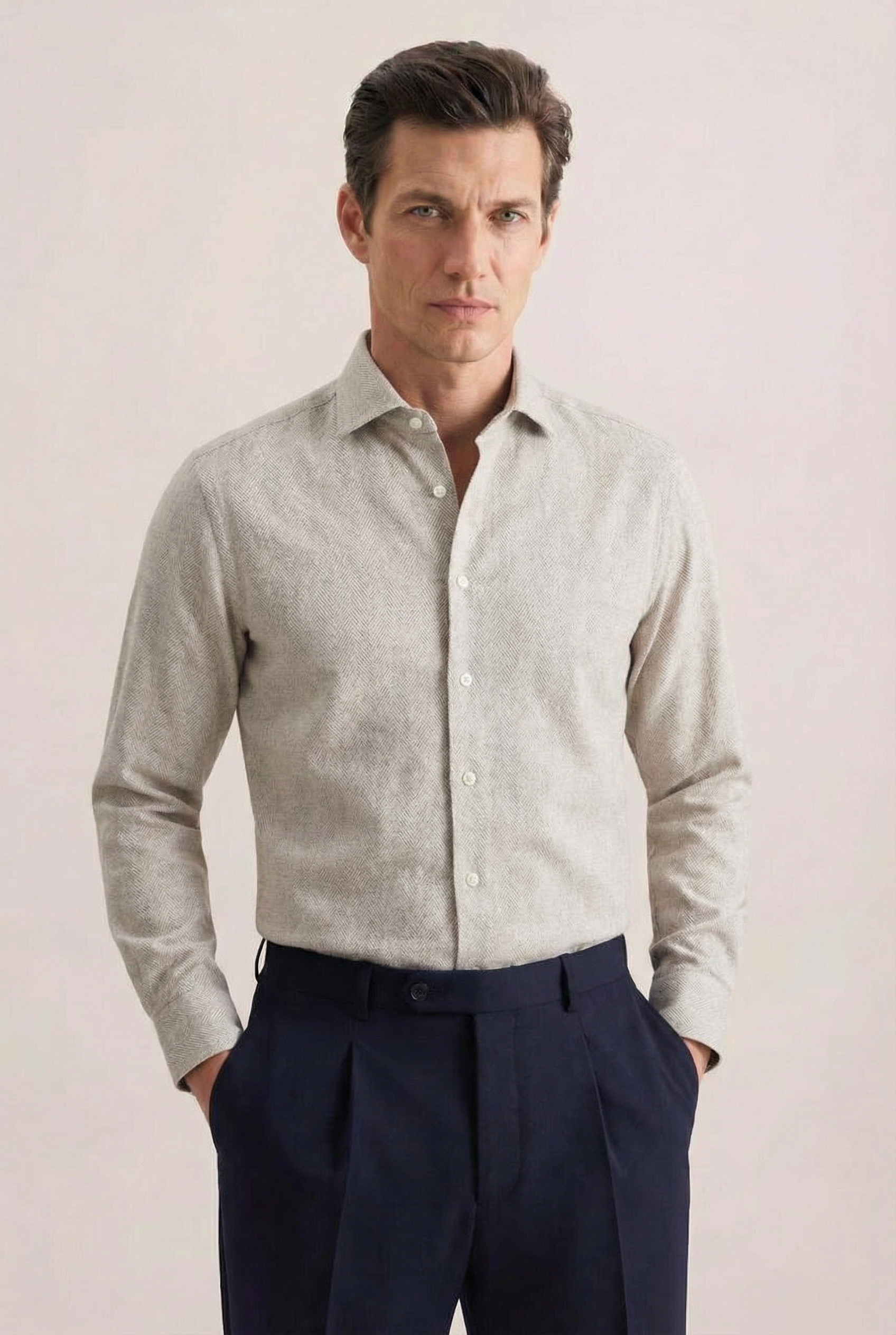 • Shaped Fit, Классический воротник, Светло-серый