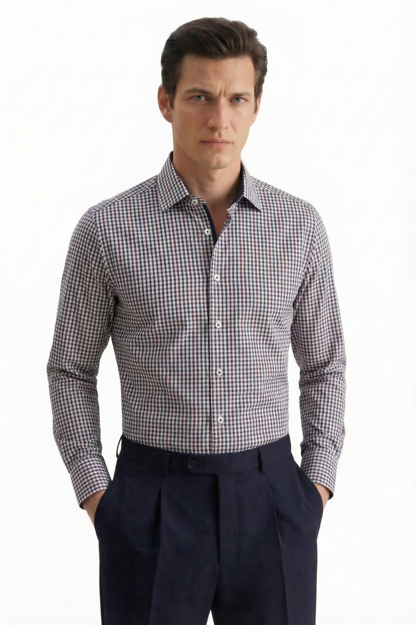 • Tailored fit, Классический воротник, Классический (на пуговице), Однотонный, Бордовый