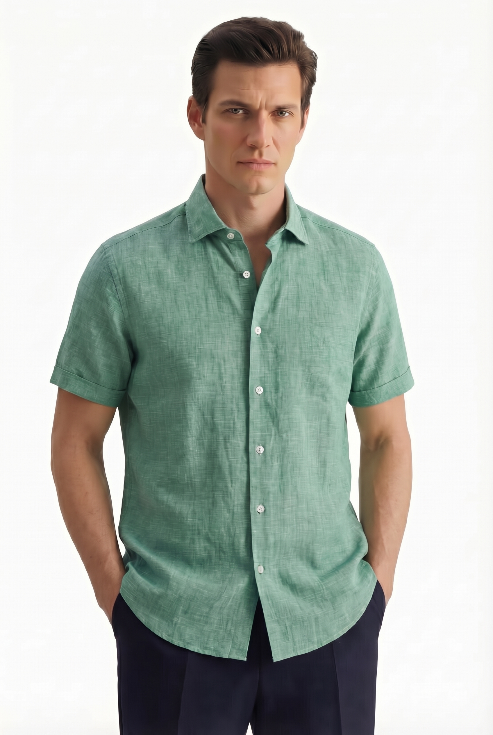 • Прямой силуэт, Классический воротник, Однотонный, Зеленый