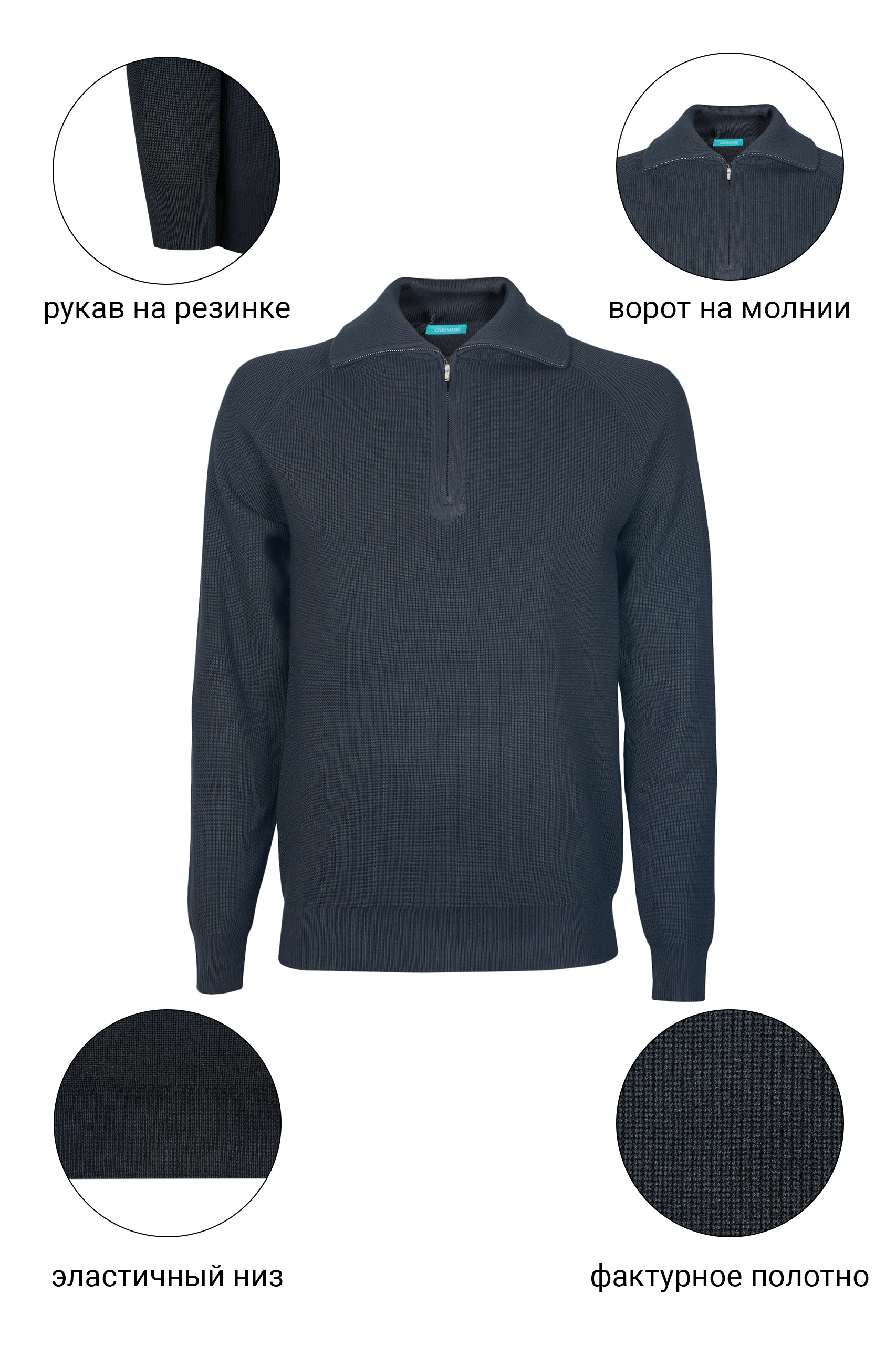• Джемпер CAIOMARIO прямого силуэта, из высококачественного хлопкового трикотажа с добавлением акрила. Модель с воротником «стойка» выполненным двойной резинкой. Застежка на короткой молнии. Низ изделия и рукавов на резинке. Прекрасно сочетается с джинсами и брюками . Отлично подходит для повседневной носки. Выбирайте качество, выбирайте стиль, выбирайте CAIOMARIO!